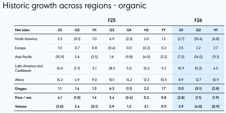 It didn’t last long, did it? The latest rally in Diageo (LSE:DGE)’s share price was a sign that many investors see it as an overvalued asset that is ready for a pullback. That was until Wednesday (25 February), when the drinks giant released results for the six months ended 31 December 2025 (H1 FY26). Its shares closed the day 12.7% lower.